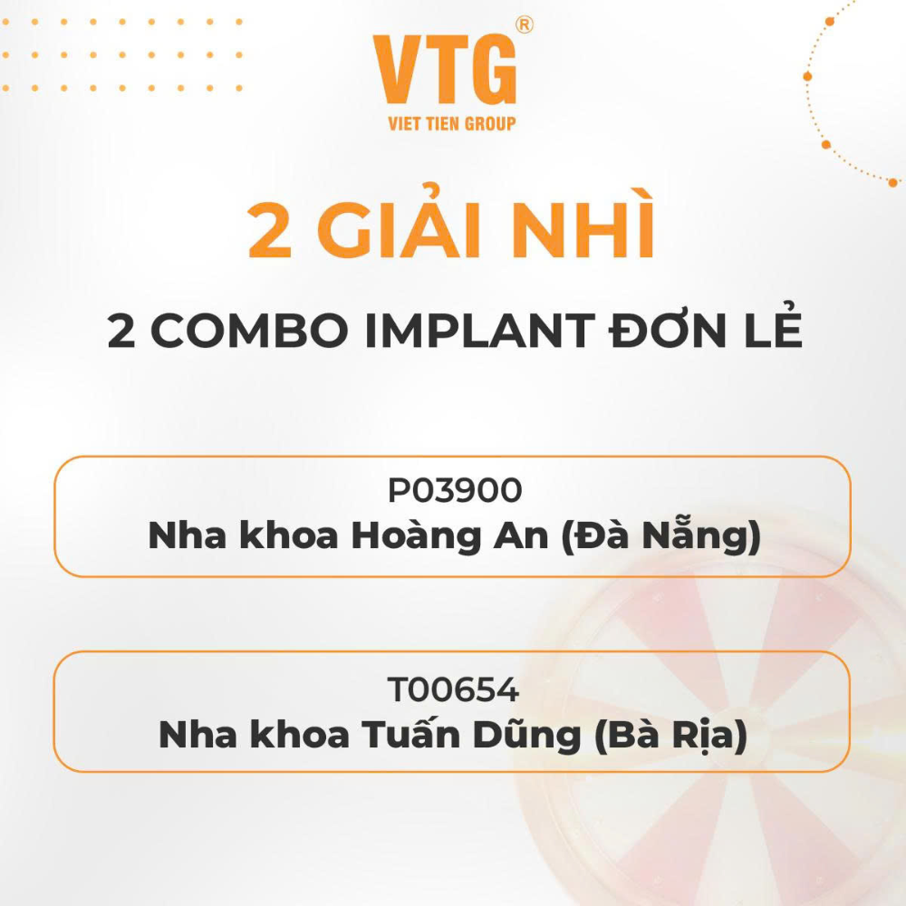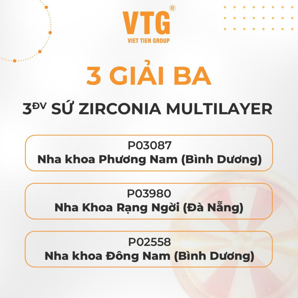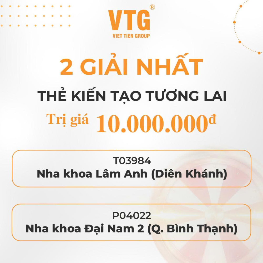 Việt Tiên Lab xin chúc mừng Bác sĩ Phương (Biên Hòa), chủ nhân Giải Đặc Biệt của chương trình, đã xuất sắc nhận được Máy Scan Rapid 3, thiết bị chuyển đổi số trong nha khoa, giúp tối ưu quy trình điều trị và mang lại giá trị vượt trội cho cả Bác sĩ lẫn bệnh nhân.Việt Tiên cũng trân trọng công bố danh sách các giải thưởng của chương trình “Vòng Quay May Mắn”, đồng thời gửi lời chúc mừng chân thành đến Quý Nha khoa và Bác sĩ đã may mắn nhận được những phần quà giá trị và đầy ý nghĩa từ chương trình.