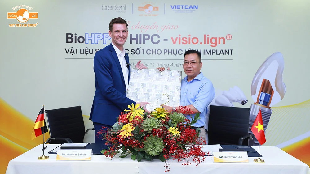 Sự kiện hợp tác hướng đến mục tiêu đưa vật liệu sinh học số một cho phục hình Implant BioHPP được ứng dụng trên phục hình hàm Hybrid. Thông qua buổi lễ ký kết, Công ty Bredent đã chia sẻ kiến thức về vật liệu BioHPP đến các kỹ thuật viên Việt Tiên.