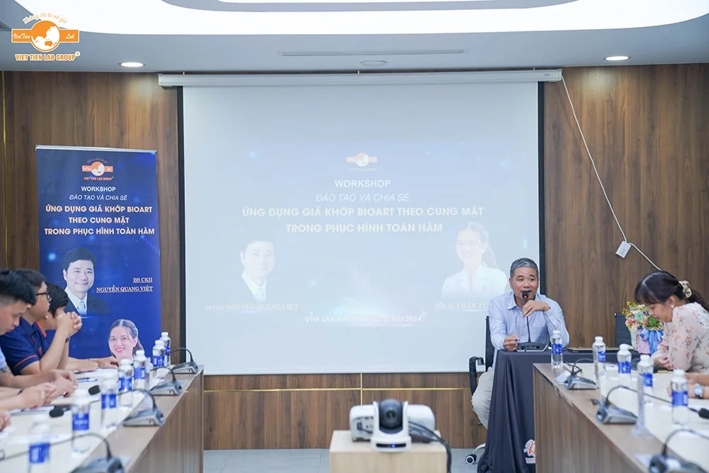 Ngày 22/04/2024 vừa qua, Việt Tiên Lab Group đã tổ chức buổi đào tạo nội bộ cho đội ngũ kỹ thuật viên với chủ đề “Ứng Dụng Giá Khớp Bioart Theo Cung Mặt Trong Phục Hình Toàn Hàm”.